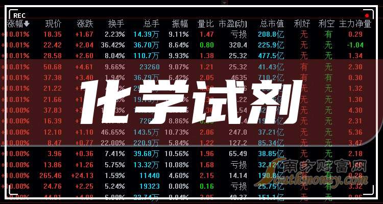 據(jù)南方財富網(wǎng)概念庫數(shù)據(jù)顯示,相關(guān)化學(xué)試劑題材股票有: