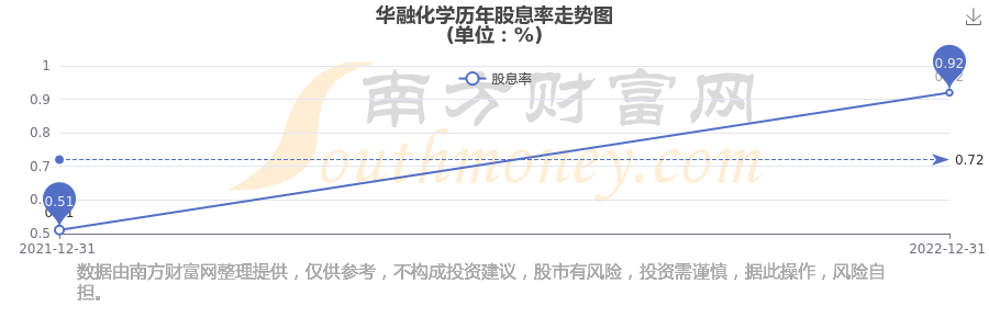 華融化學(xué)歷年股息率走勢如下圖: