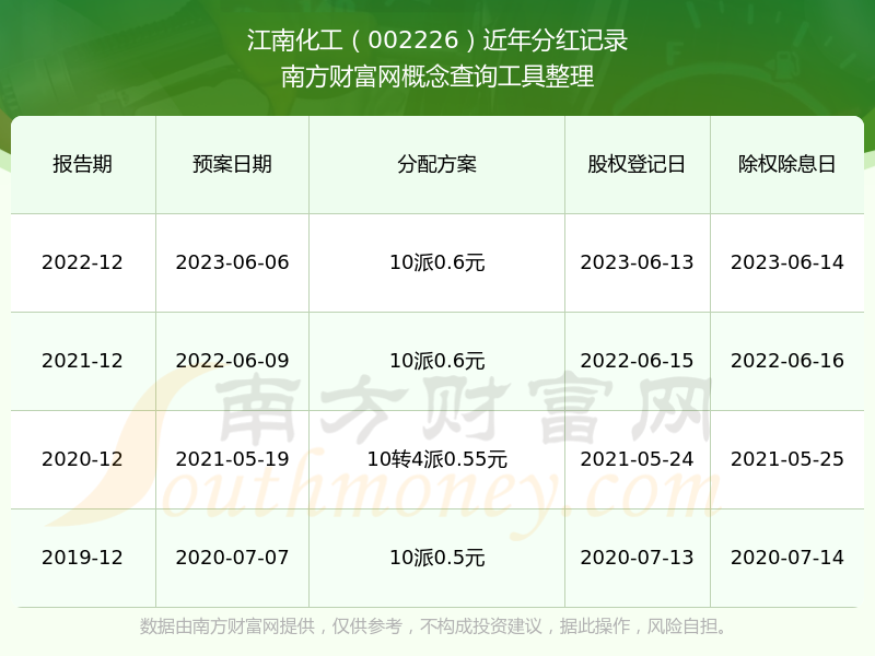江南化工最新一次公布的分紅方案:10派0.6元。
