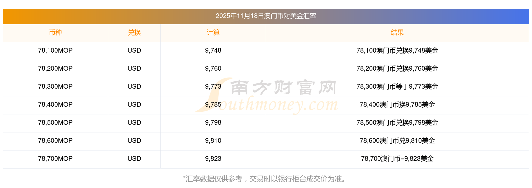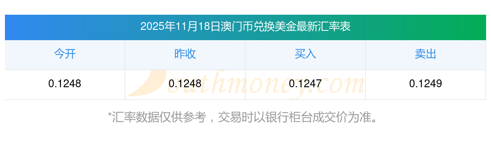南方財富網(wǎng)為您提供澳門幣對美金匯率最新價格詳情。