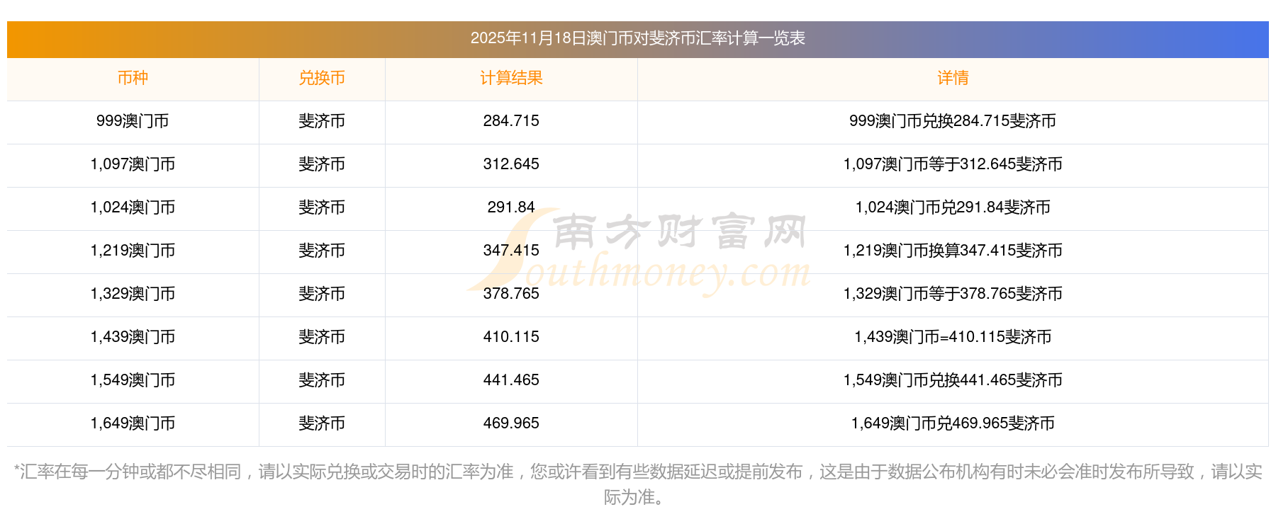今天澳門幣兌斐濟幣外幣匯率?2025/11/18