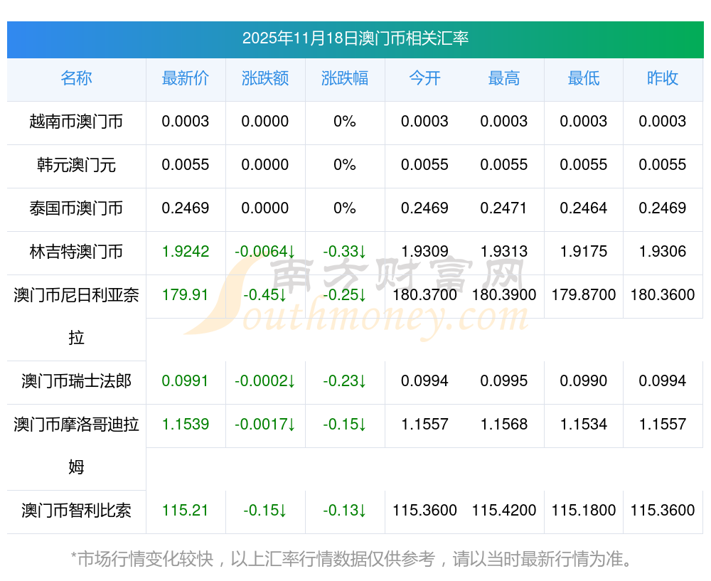 2025年11月18日澳門幣相關(guān)匯率查詢