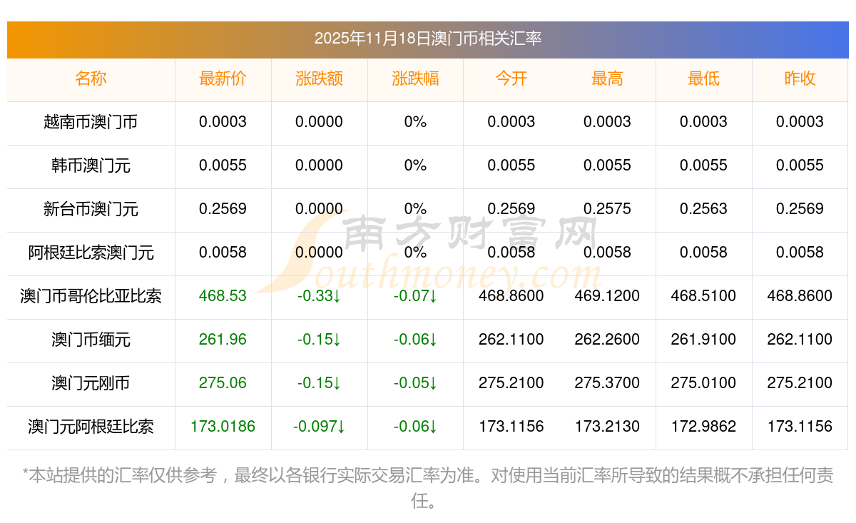 2025年11月18日澳門幣相關(guān)匯率查詢