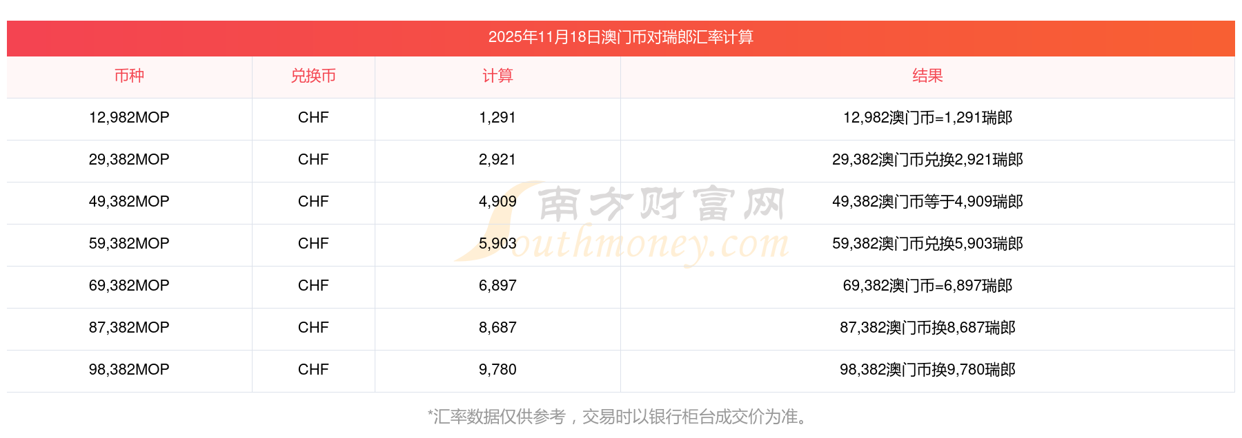 6兌換為 | 將澳門幣轉(zhuǎn)換為瑞郎是多少? 11-18