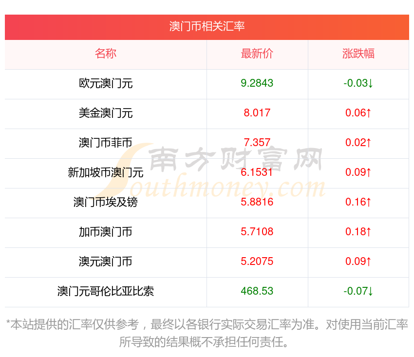 南方財(cái)富網(wǎng)為您提供澳門幣對(duì)瑞郎匯率最新價(jià)格詳情。