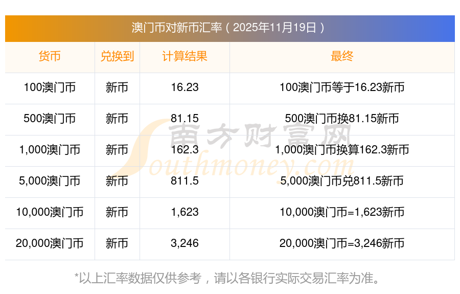 2025年11月19日7澳門(mén)幣計(jì)算新幣等于多少?