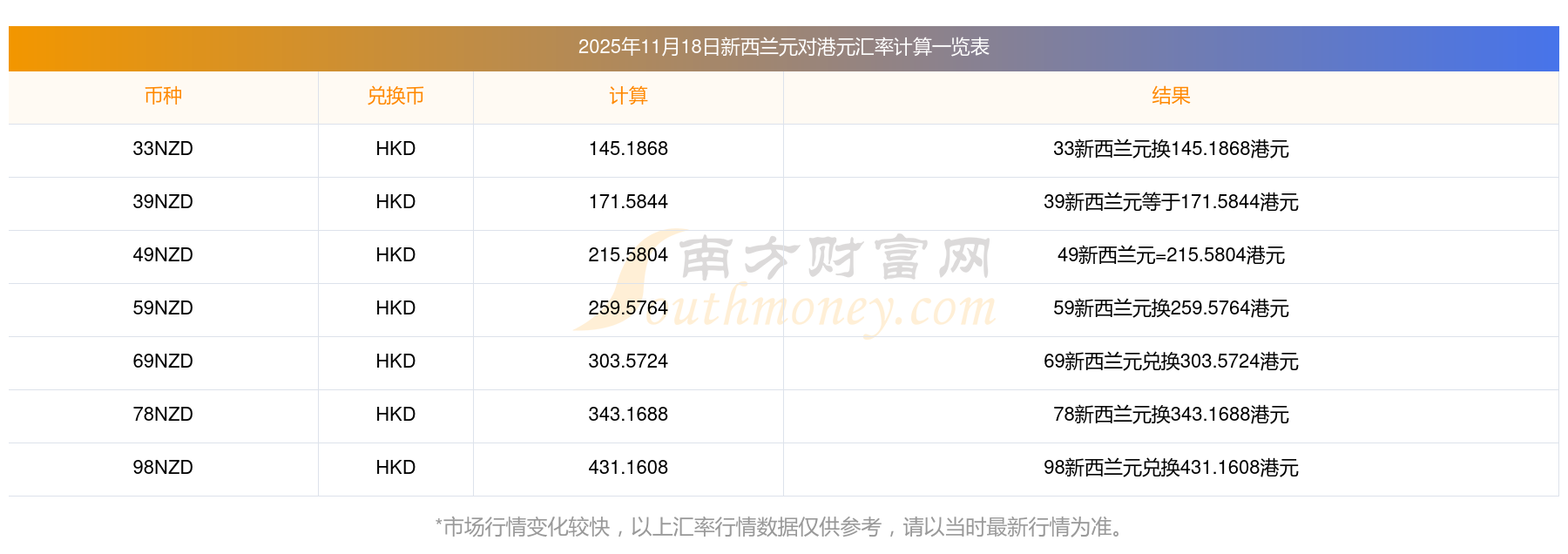 今天匯率更新!2025年11月18日78新西蘭元兌換港元是多少?