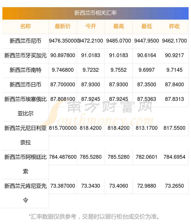 2025年11月18日新西蘭幣相關(guān)匯率查詢