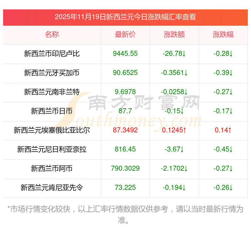 2025年11月19日新西蘭元相關(guān)匯率查詢