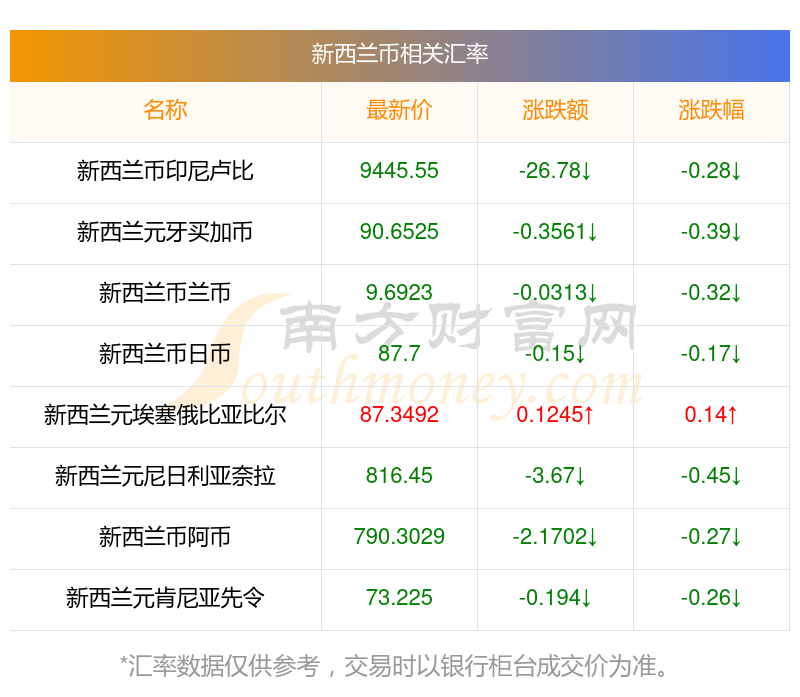 2025年11月19日新西蘭幣相關(guān)匯率查詢