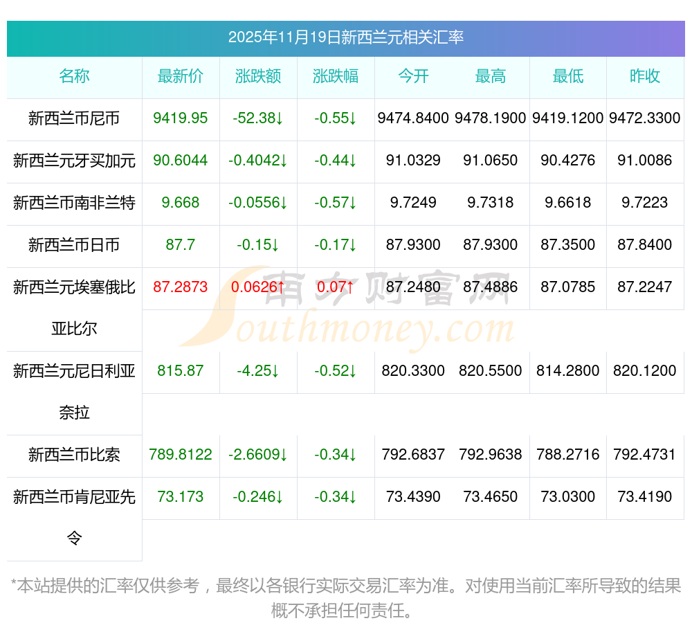 2025年11月19日新西蘭元相關(guān)匯率查詢
