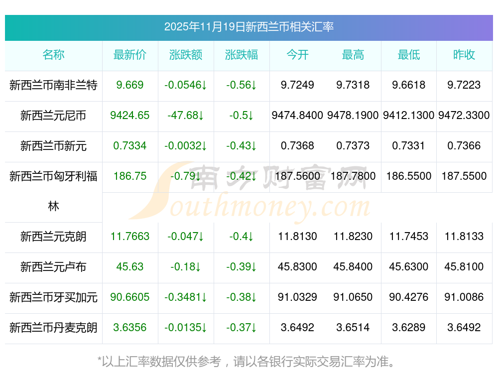 2025年11月19日新西蘭幣相關(guān)匯率查詢