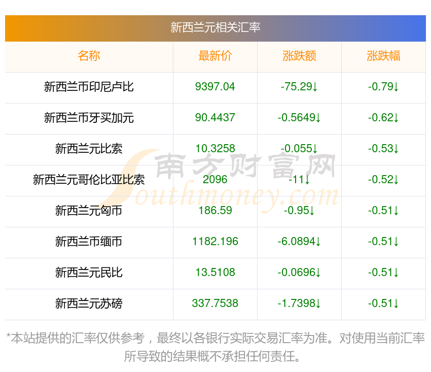 2025年11月19日新西蘭元相關(guān)匯率查詢