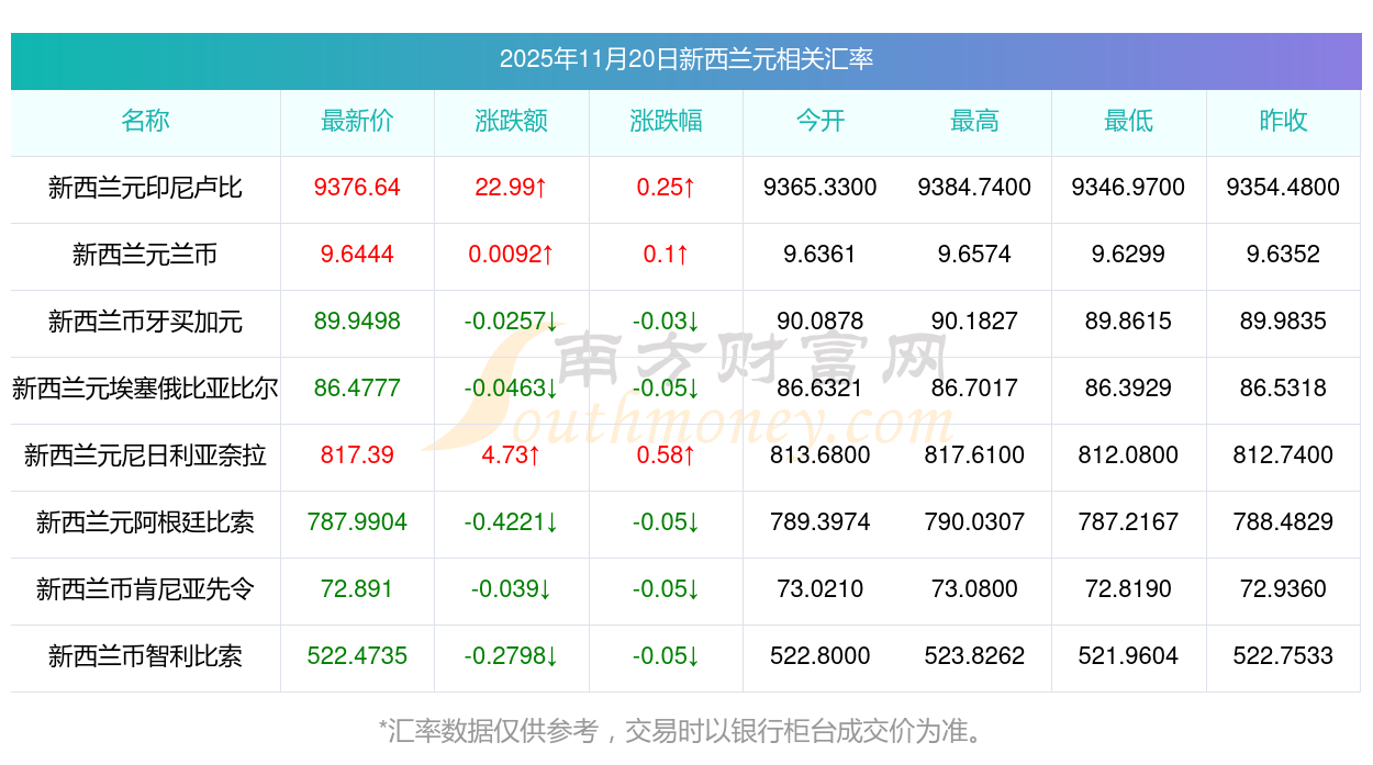 2025年11月20日新西蘭元相關(guān)匯率查詢