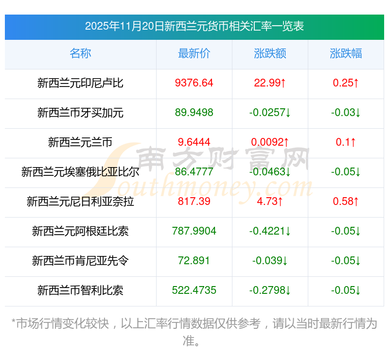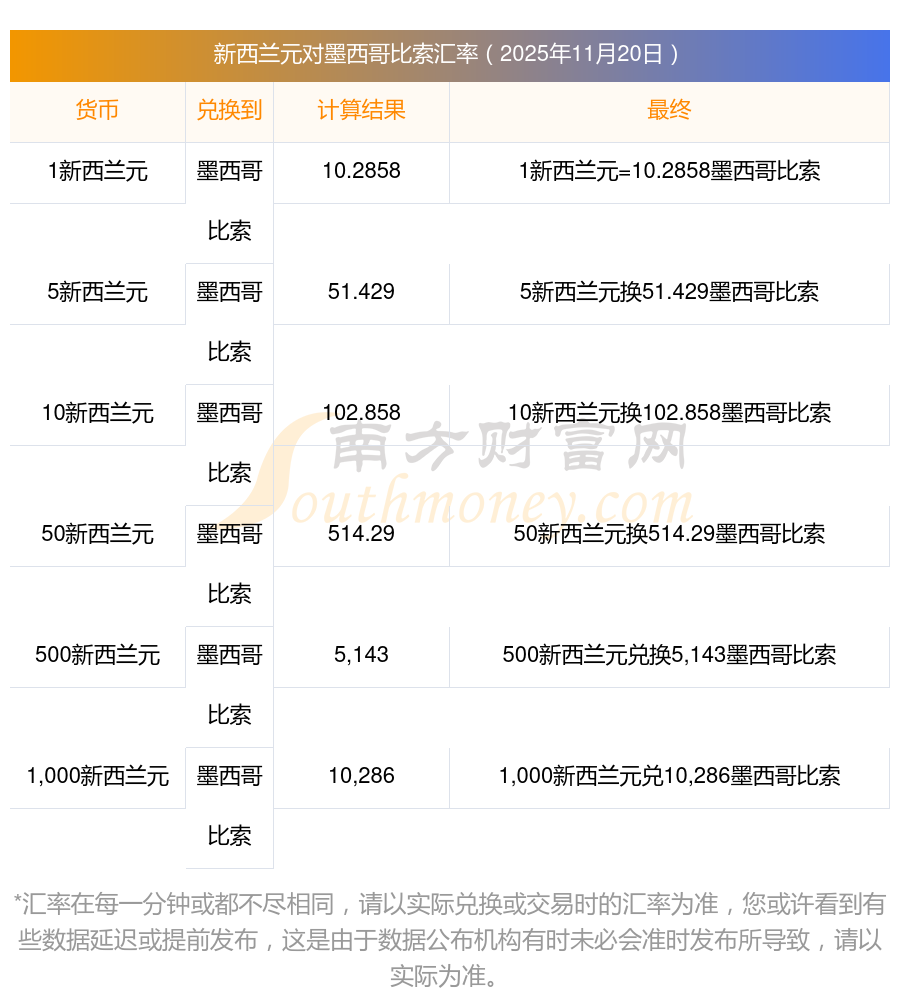 今日新西蘭元對(duì)墨西哥比索匯率多少?11-20
