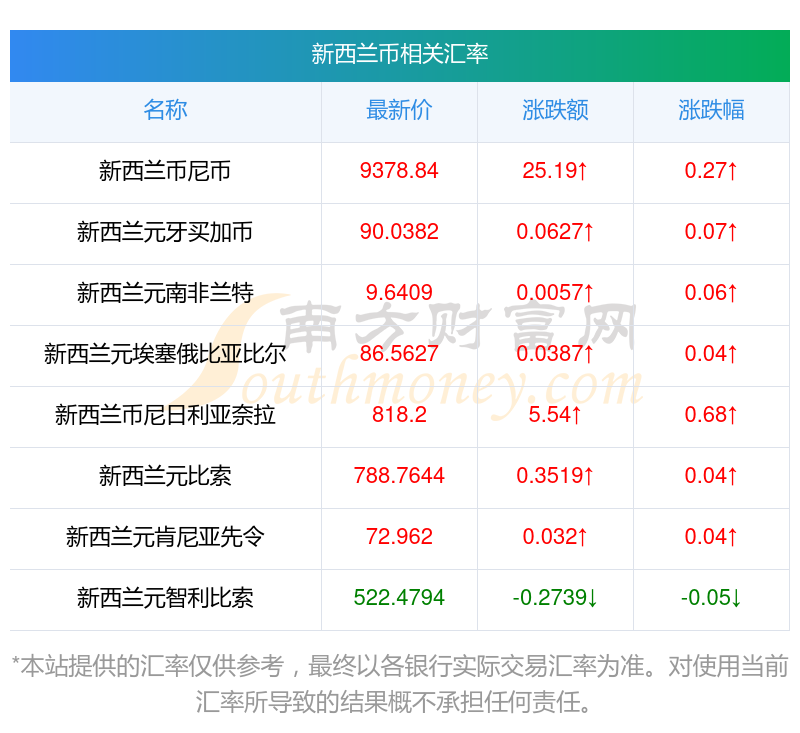 2025年11月20日新西蘭幣相關(guān)匯率查詢