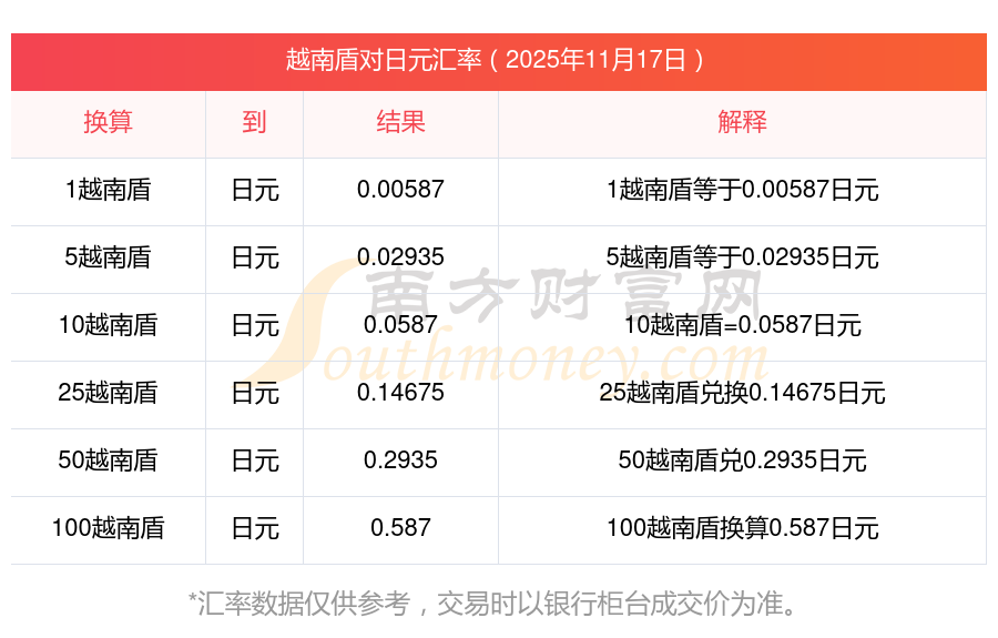 越南盾對(duì)日元匯率今日走勢(shì)?2025/11/17