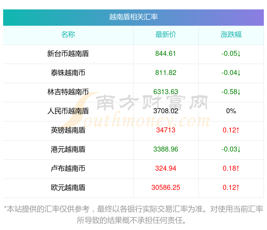 南方財(cái)富網(wǎng)為您提供越南盾對克朗匯率最新價(jià)格詳情。