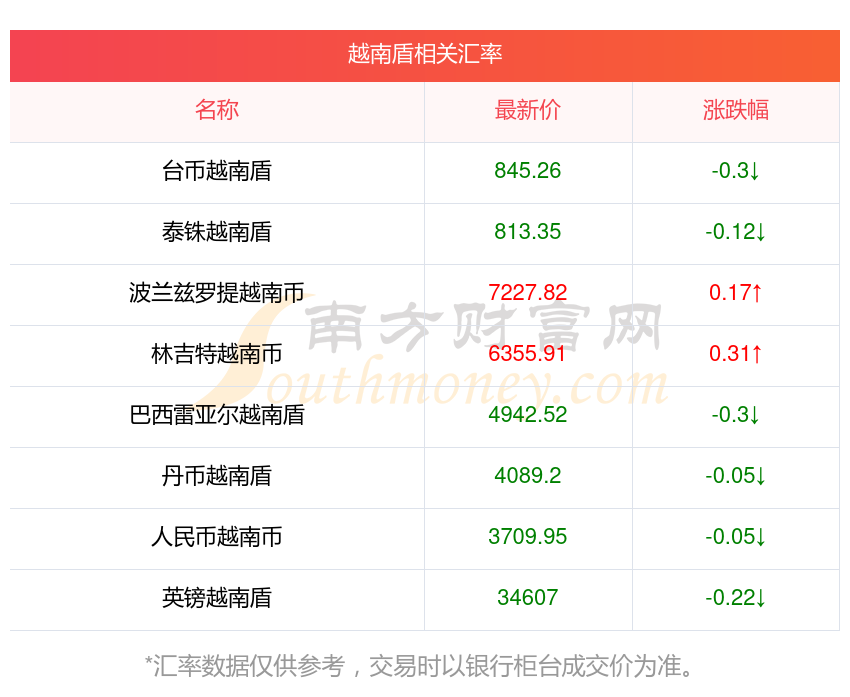 2025年11月19日越南盾相關(guān)匯率查詢