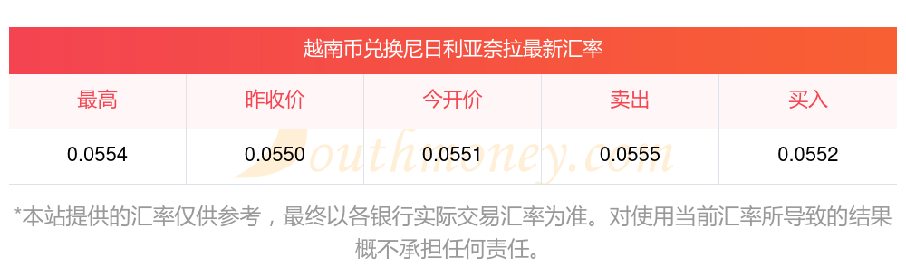 今日越南幣匯價:2025年11月20日23越南幣兌尼日利亞奈拉匯價一覽表