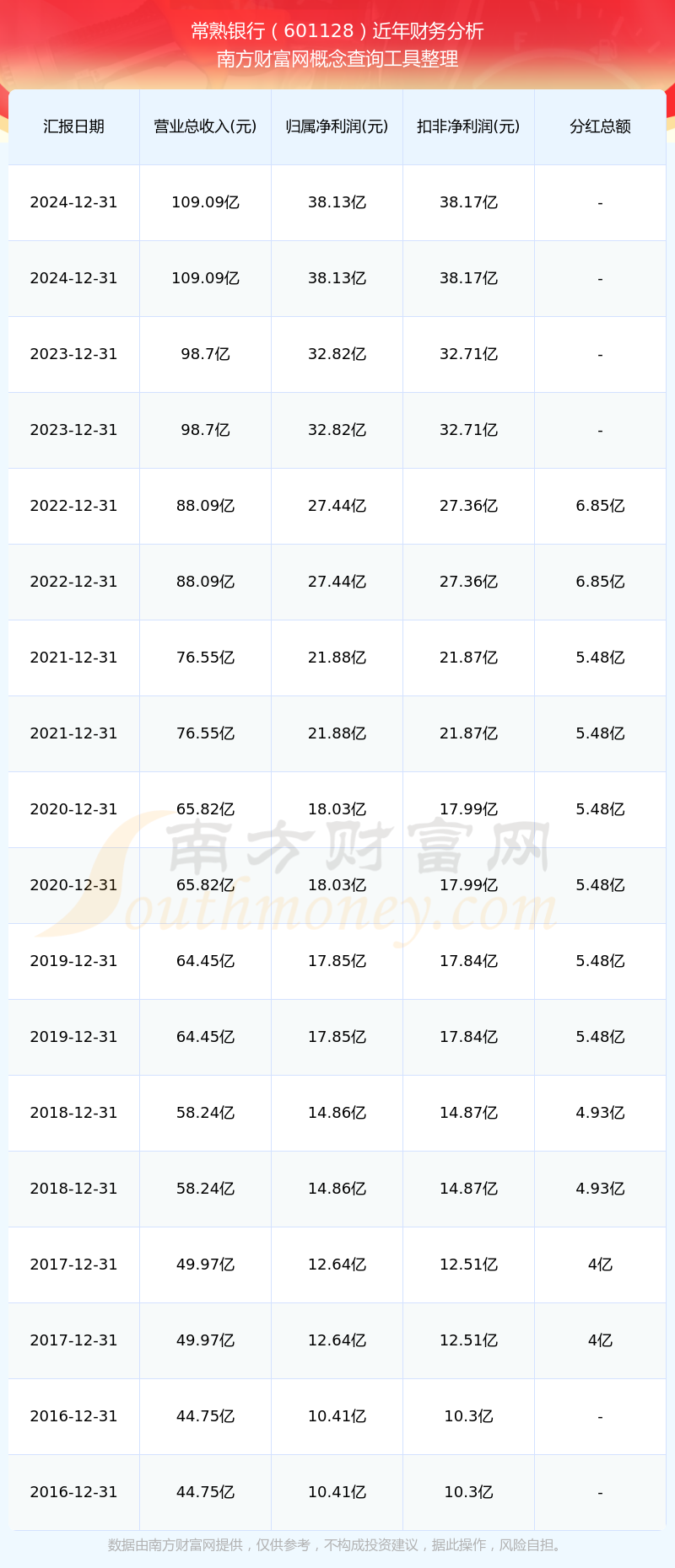 2024年報顯示,常熟銀行實現(xiàn)營收109.09億,同比增長10.53%;凈利潤38.13億。