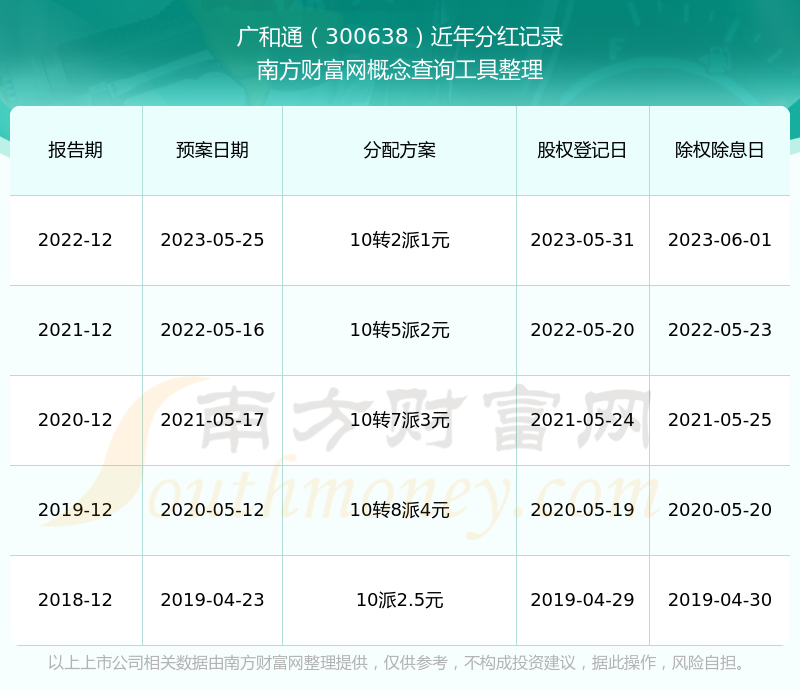 廣和通最新一次公布的分紅方案為10轉(zhuǎn)2派1元。本次權(quán)益分派股權(quán)登記日為2023年5月31日,除權(quán)除息日為2023年6月1日,派息日為2023年6月1日。