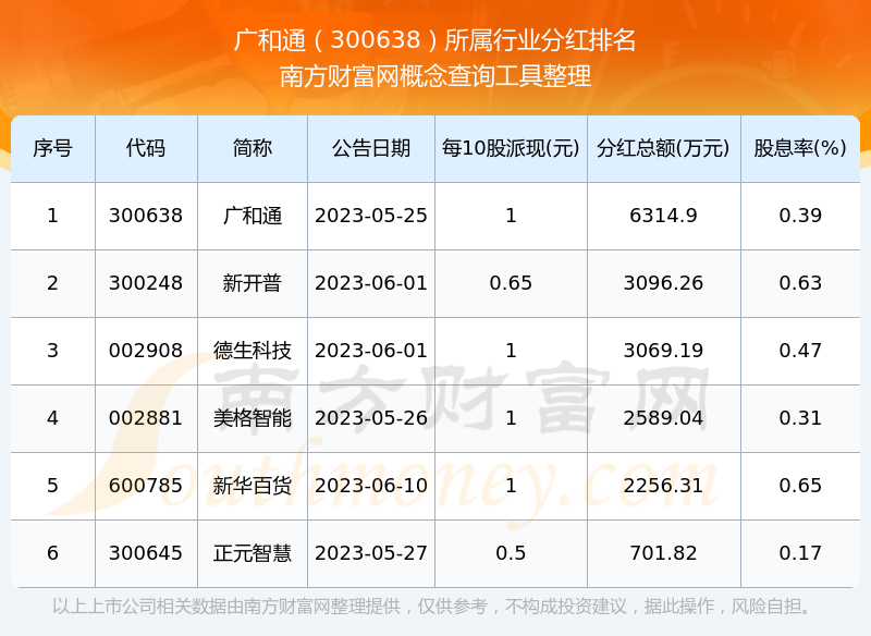 按照南方財(cái)富網(wǎng)趨勢(shì)選股系統(tǒng)統(tǒng)計(jì),廣和通所屬行業(yè)為通信設(shè)備行業(yè),通信設(shè)備行業(yè)分紅排名情況如下表: