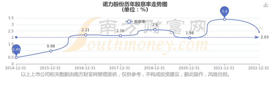 諾力股份歷年股息率走勢如下圖: