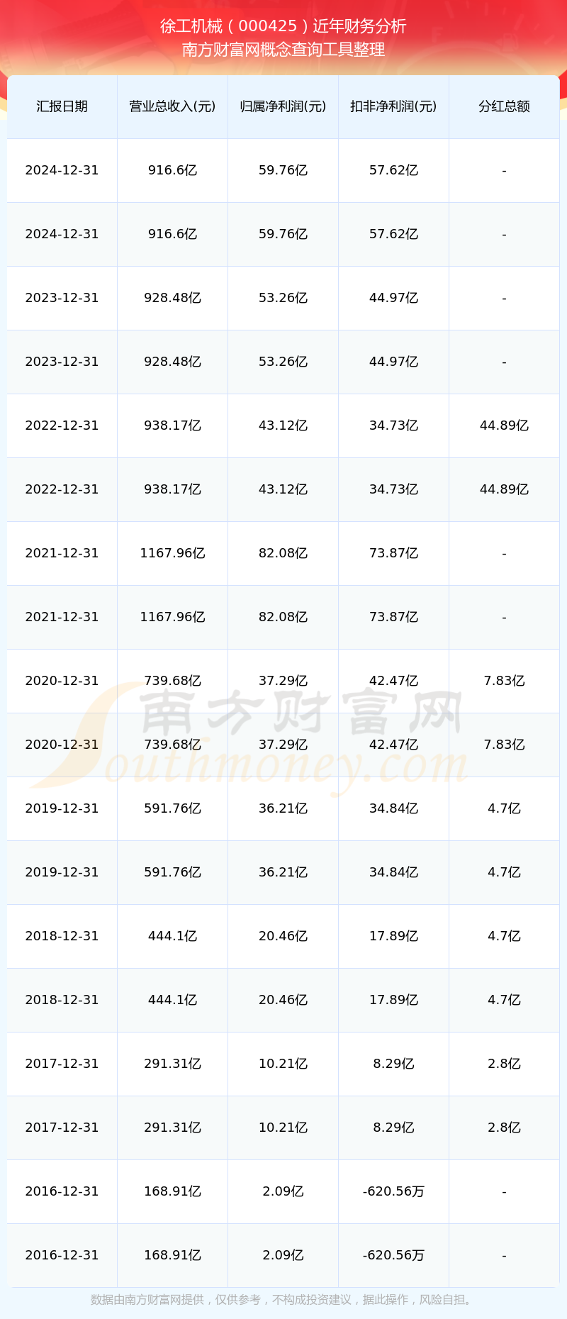 徐工機(jī)械2024年總營收916.6億,同比增長-1.28%;凈利潤59.76億,同比增長12.2%;銷售毛利率22.55%。