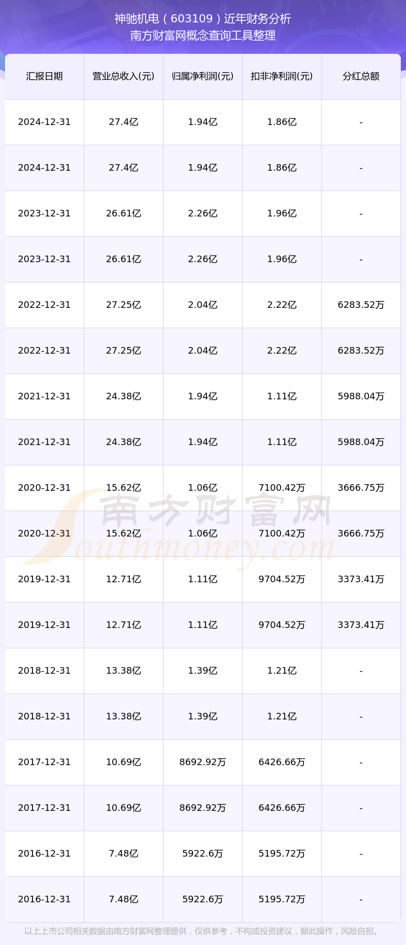 神馳機電公司2024年實現(xiàn)營業(yè)收入27.4億元,同比增長2.96%;凈利潤1.94億元,同比增長-14.35%;毛利率26.47%。