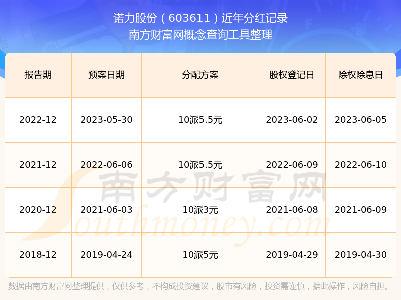 諾力股份最新一次公布的分紅方案為10派5.5元。本次權(quán)益分派股權(quán)登記日為2023年6月2日,除權(quán)除息日為2023年6月5日,派息日為2023年6月5日。