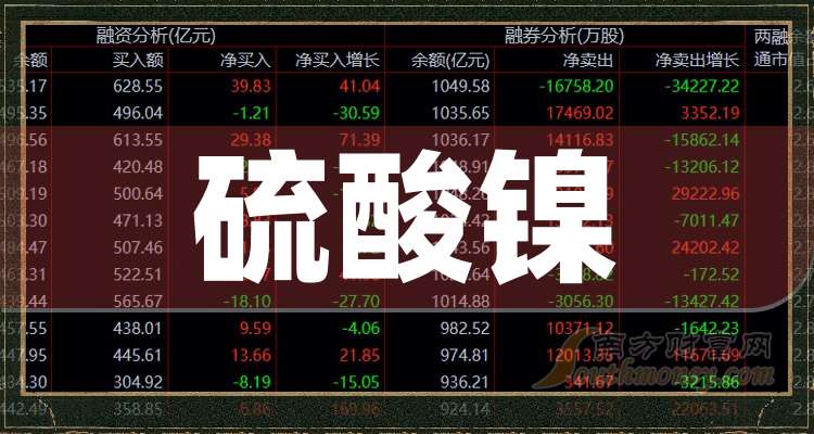 據(jù)南方財富網(wǎng)概念查詢工具數(shù)據(jù)顯示,硫酸鎳題材有:
