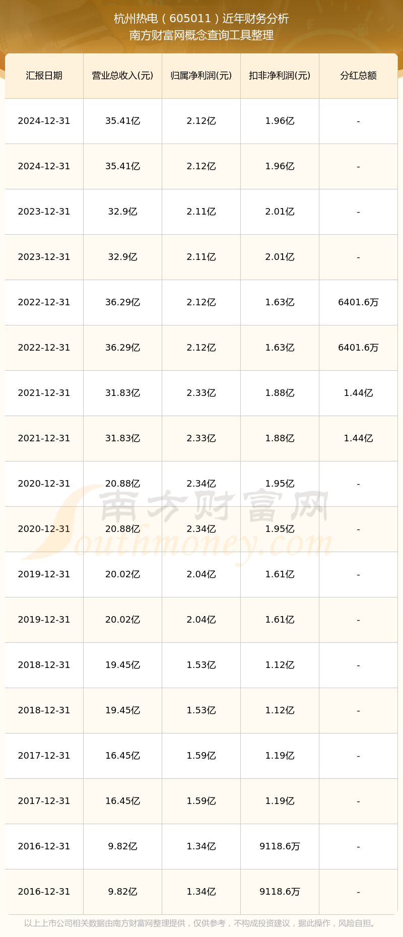 杭州熱電公司2024年實(shí)現(xiàn)營業(yè)收入35.41億元,同比增長7.64%;凈利潤2.12億元,同比增長0.3%;毛利率10.53%。