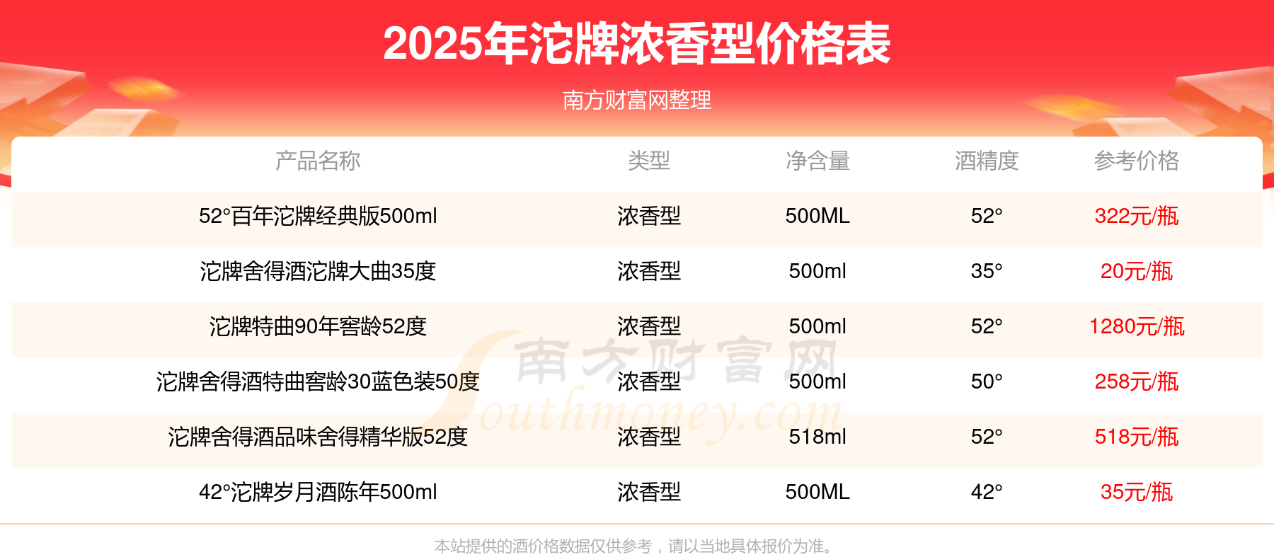 2025年沱牌濃香型酒沱牌特曲90年窖齡52度、沱牌舍得酒品味舍得精華版52度、52°百年沱牌經(jīng)典版500ml、沱牌舍得酒特曲窖齡30藍(lán)色裝50度、42°沱牌歲月酒陳年500ml等最新價格如下: