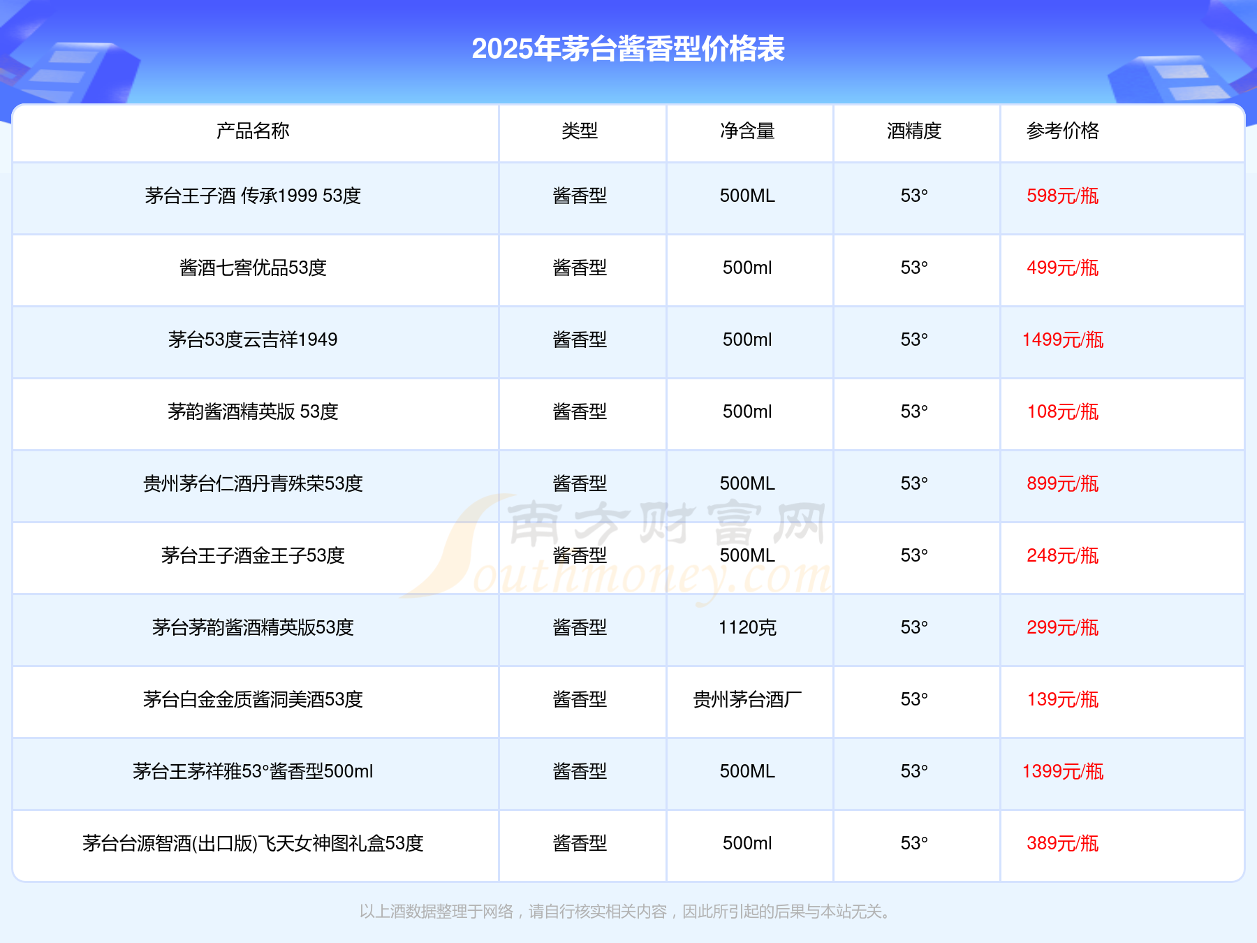 茅臺(tái)醬香型酒最新價(jià)格2025: