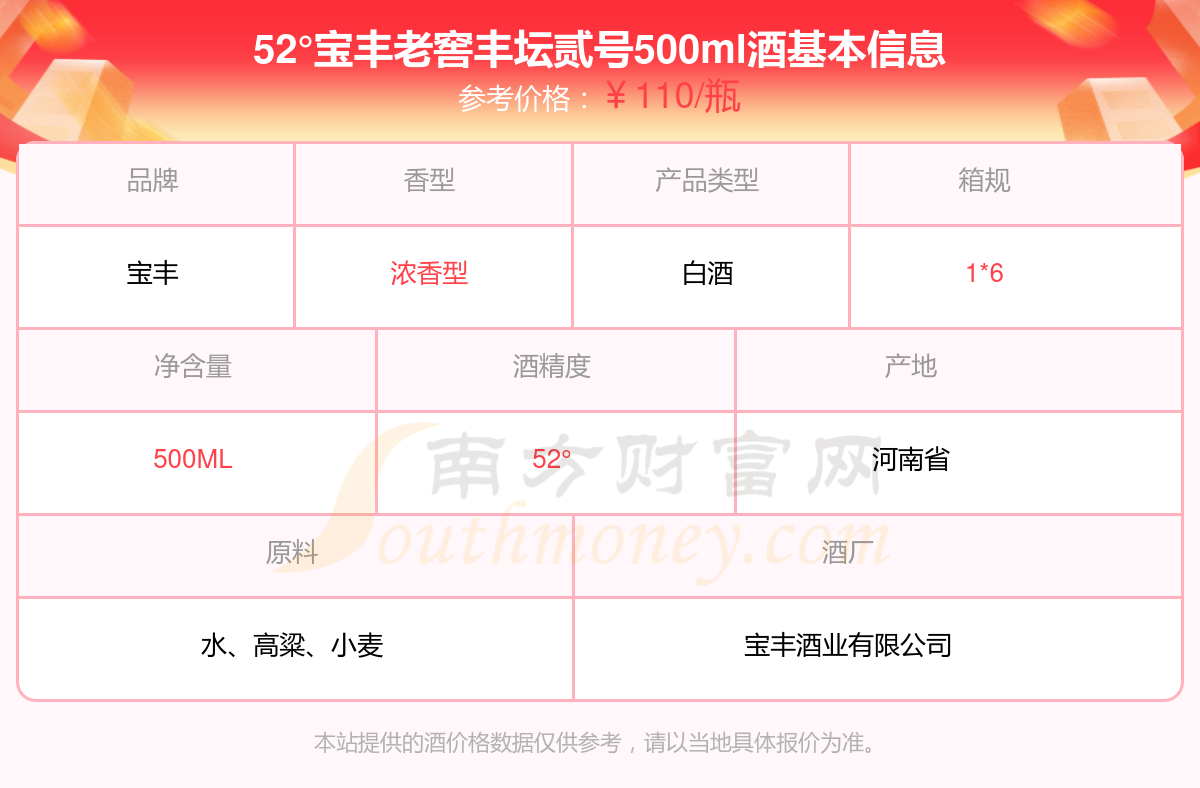 52°寶豐老窖豐壇貳號500ml基本信息
