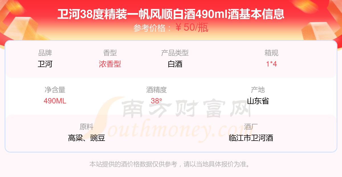 衛(wèi)河38度精裝一帆風(fēng)順白酒490ml基本信息