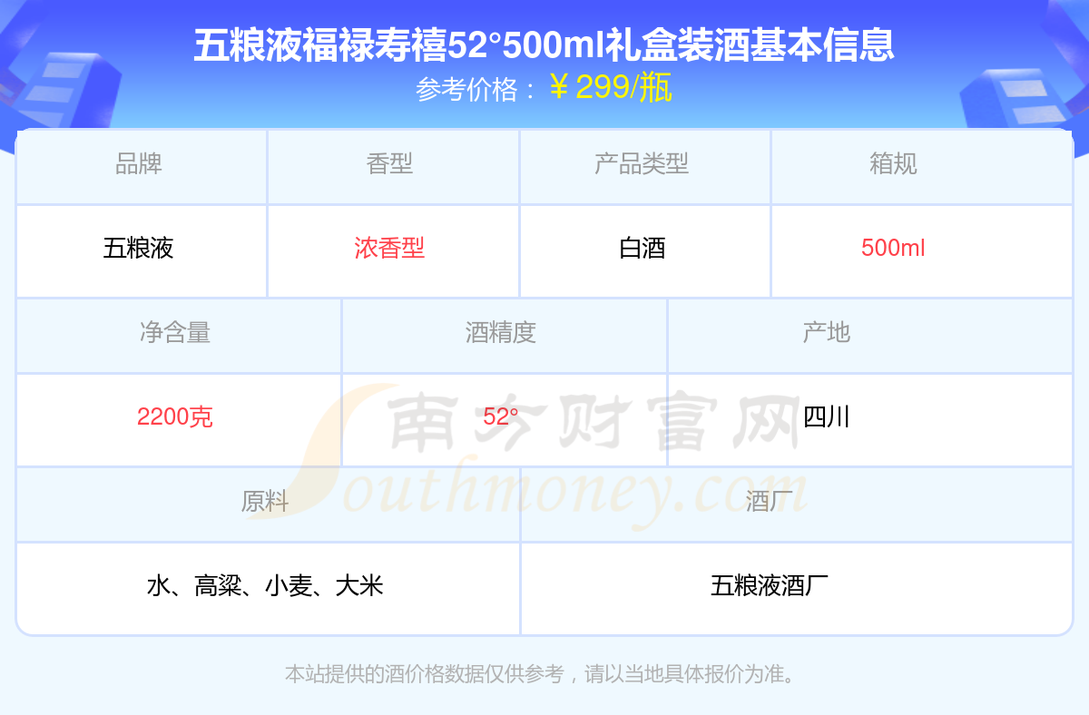 五糧液福祿壽禧52°500ml禮盒裝基本信息