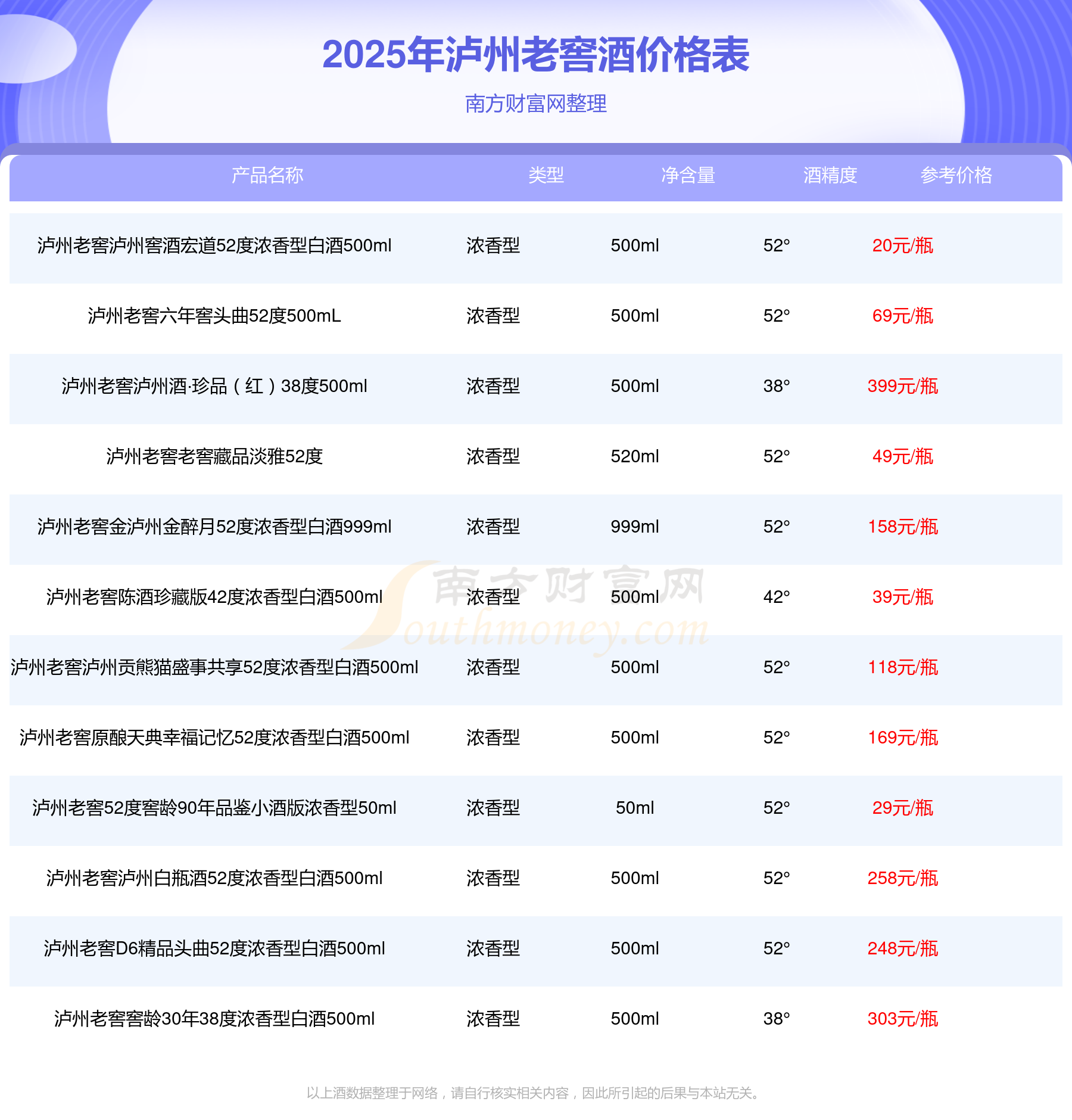 瀘州老窖酒價(jià)格最高的是瀘州老窖國(guó)窖1573春釀鼠兆豐年E 55度,參考價(jià)17999元/瓶,最低的是瀘州老窖45度五洲醉8窖經(jīng)典小酒版濃香型100ml,參考價(jià)10元/瓶,價(jià)格高低差為17989元/瓶。