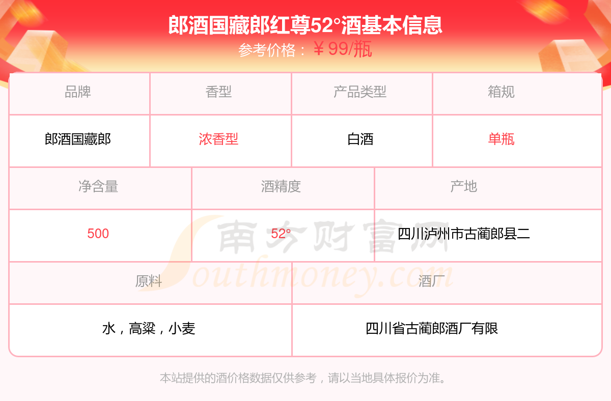 郎酒國(guó)藏郎紅尊52°基本信息