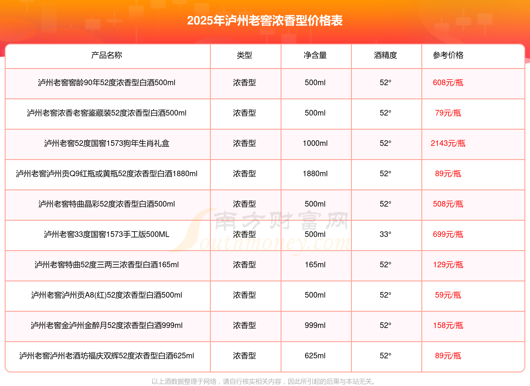 2025年瀘州老窖濃香型酒瀘州老窖國(guó)窖1573春釀鼠兆豐年E 55度、瀘州老窖國(guó)窖1573生命中的那壇酒55度014、瀘州老窖國(guó)窖1573春釀鼠兆豐年A 55度、瀘州老窖國(guó)窖1573生命中的那壇酒55度013濃香型白酒1000ml、瀘州老窖國(guó)窖1573生命中的那壇酒55度009 1000ml等最新價(jià)格如下:瀘州老窖國(guó)窖1573春釀鼠兆豐年E 55度參考價(jià)17999元/瓶、瀘州老窖國(guó)窖1573生命中的那壇酒55度014參考價(jià)9999元/瓶、瀘州老窖國(guó)窖1573春釀鼠兆豐年A 55度參考價(jià)5088元/瓶、瀘州老窖國(guó)窖1573生命中的那壇酒55度013濃香型白酒1000ml參考價(jià)4988元/瓶、瀘州老窖國(guó)窖1573生命中的那壇酒55度009 1000ml參考價(jià)4288元/瓶。