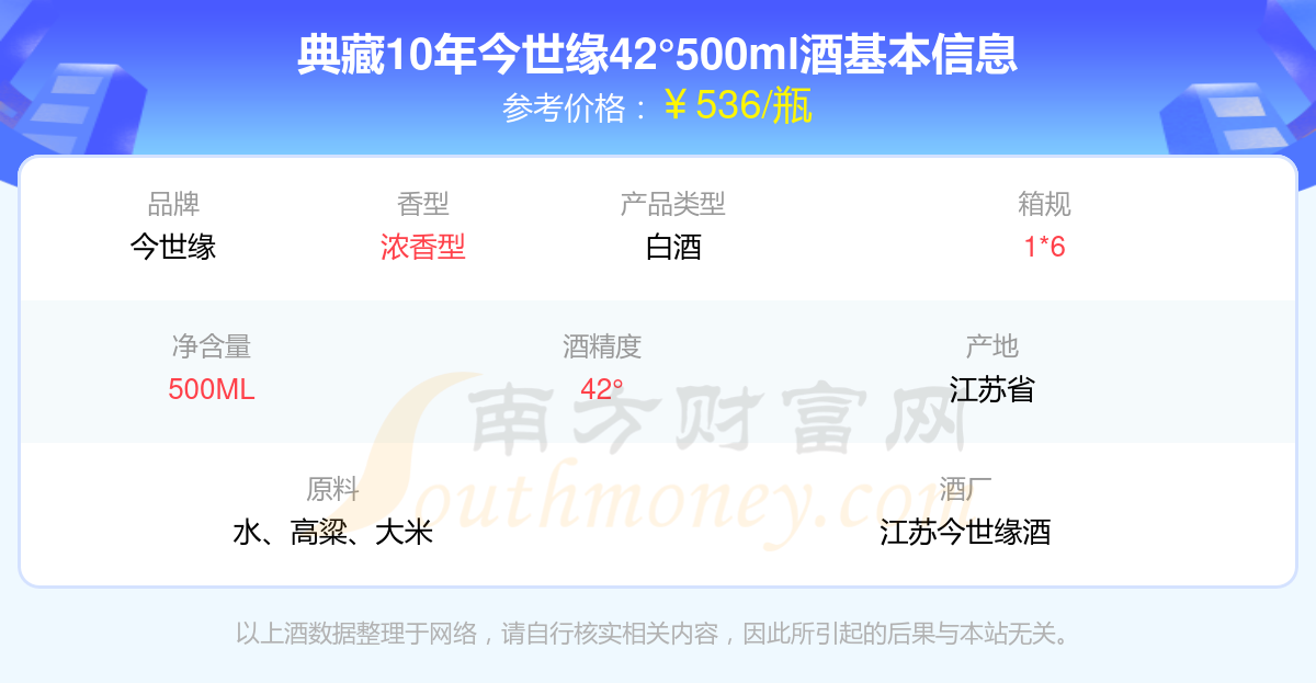 典藏10年今世緣42°500ml基本信息