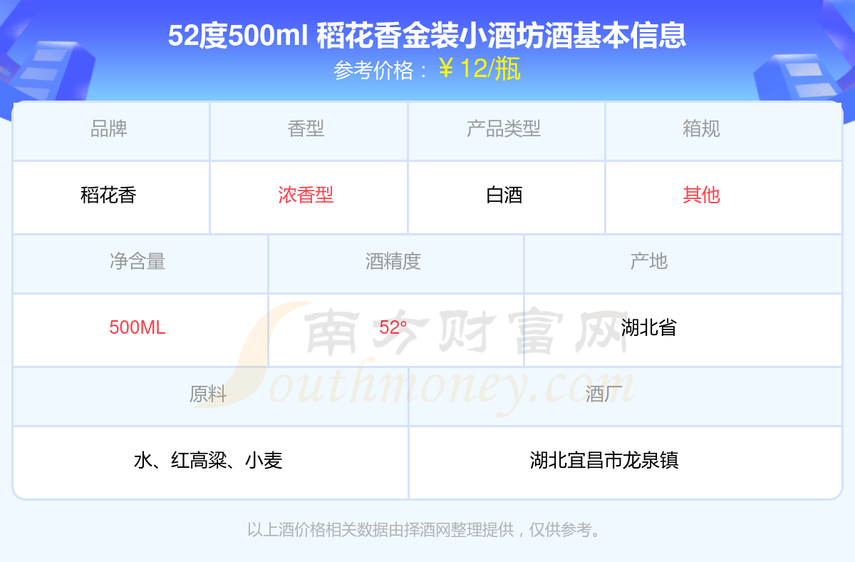 52度500ml 稻花香金裝小酒坊基本信息