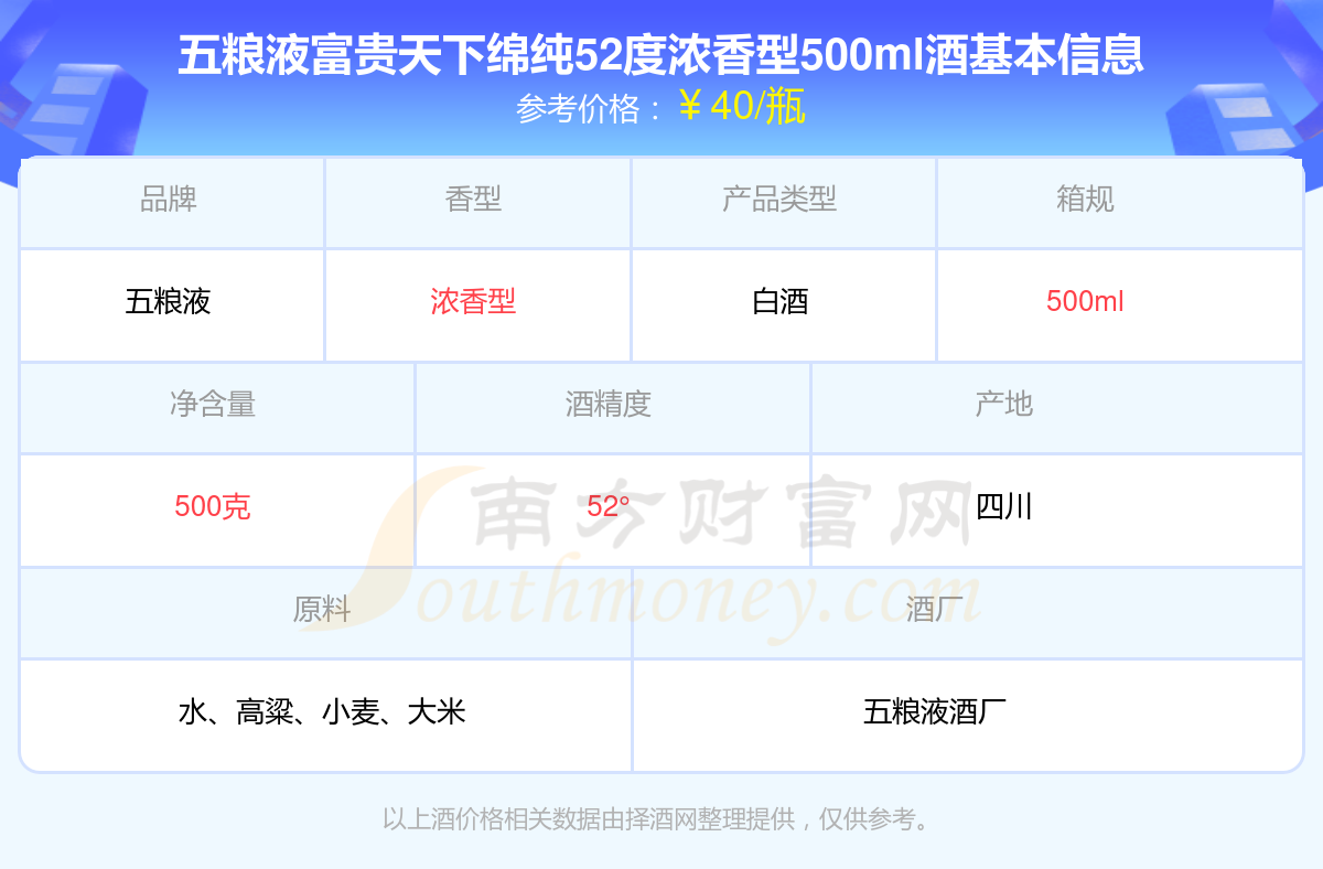 五糧液富貴天下綿純52度濃香型500ml基本信息