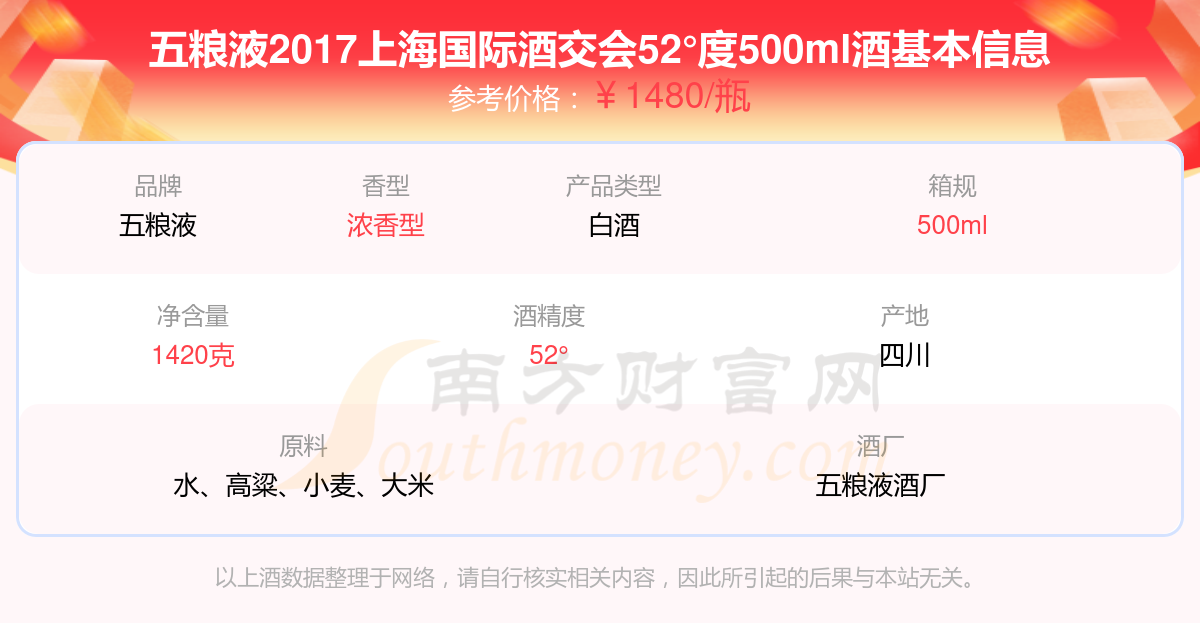 五糧液2017上海國際酒交會52°度500ml基本信息