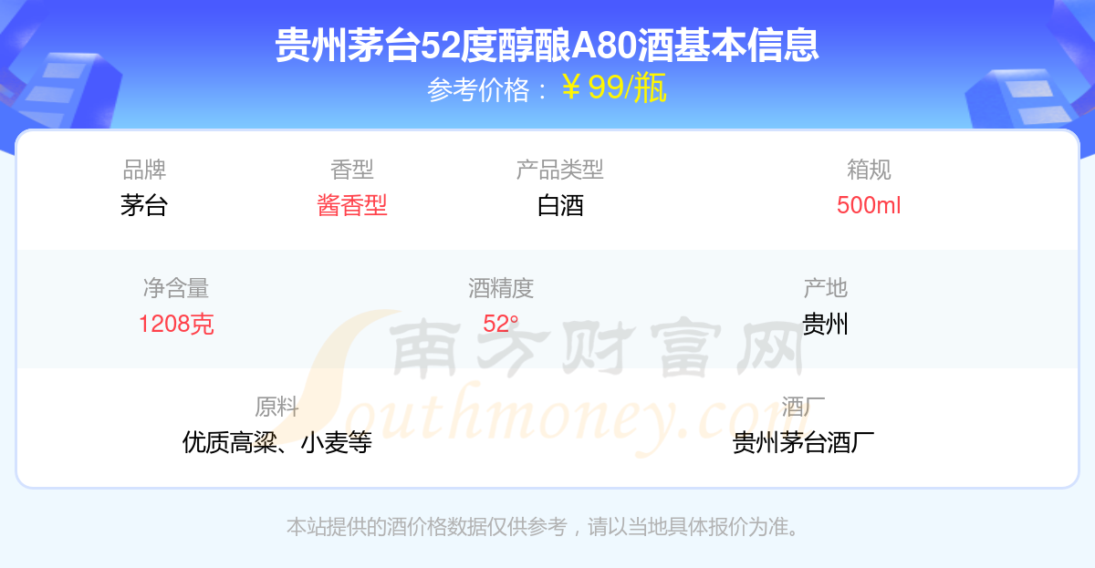 貴州茅臺52度醇釀A80基本信息