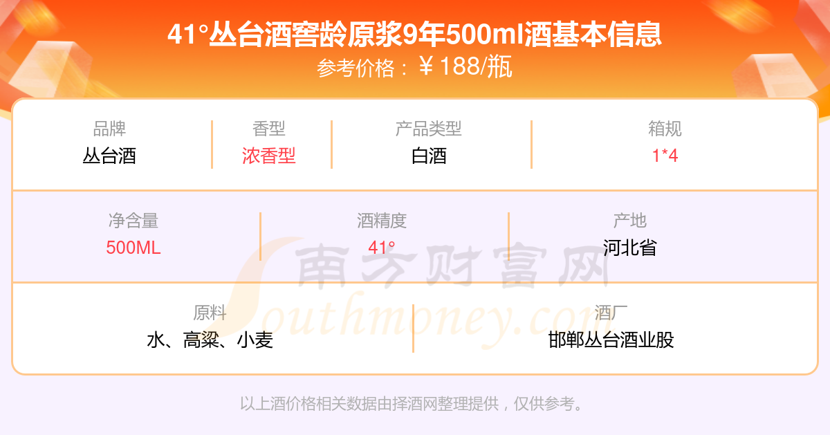 41°叢臺酒窖齡原漿9年500ml基本信息
