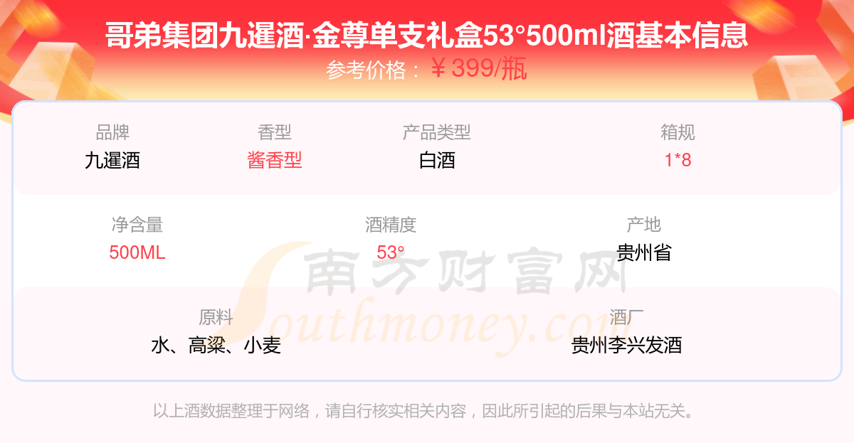 哥弟集團(tuán)九暹酒·金尊單支禮盒53°500ml基本信息