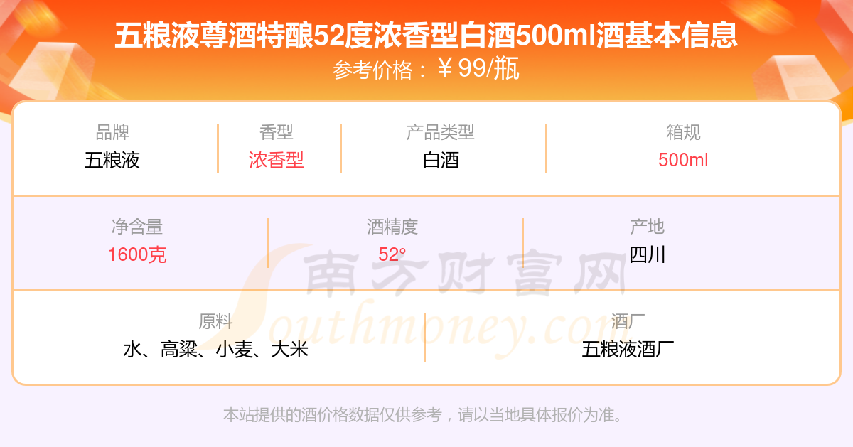 五糧液尊酒特釀52度濃香型白酒500ml基本信息