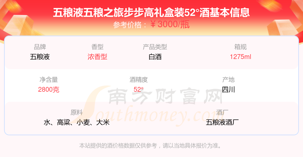 五糧液五糧之旅步步高禮盒裝52°基本信息